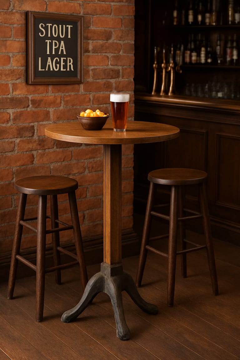 Mesa Bistrô Alta Vintage com Tampo em Pinho de Riga e Base em Ferro Fundido - Elegância Rústica para seu Espaço